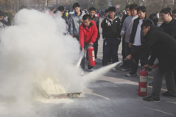 上午九点,保卫处消防科科长顾建在体育场面向全校5700多名2011级新生做消防安全常识讲座。结合国内部分高校的火灾案例,顾建向学生们传授了火灾预防、报警、扑救初起火灾、逃生自救的基础知识。随后,部分新生代表在东方大道上进行了灭火器的使用和初期火灾扑救的实地演练。10:40分,女生公寓玉兰园楼内“浓烟滚滚”,1300余名女生在模拟火场环境下进行了火场逃生疏散演练。nfA泰山医学院